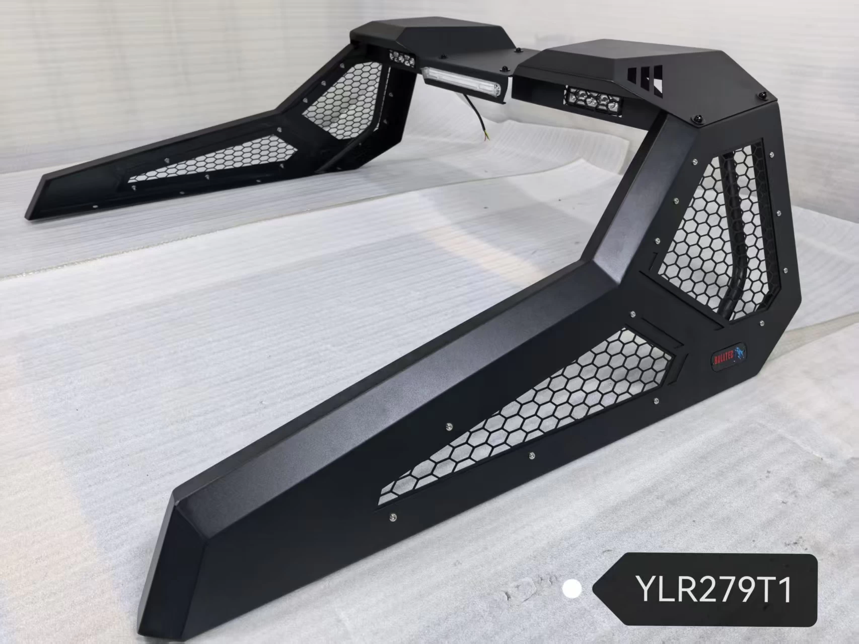 This high-strength steel pickup truck roll bar cargo bed anti-roll protection frame boasts a rugged off-road style with integrated stamping forming that perfectly fits the curve of pickup cargo beds. Its main frame is crafted from thickened carbon steel or stainless steel, with the surface treated by electrostatic spraying and high-temperature baking paint for enhanced durability, while the accessories include galvanized hardware and rubber shock absorbers to ensure stable performance. The frame is thoughtfully designed with reserved mounting holes for spotlights and spare tires, striking an ideal balance between protection and practicality. It is compatible with mainstream pickup models such as Ford F-150, Toyota Tundra/Hilux, Great Wall Poer, and Nissan Navara, making it suitable for a wide range of scenarios including outdoor off-roading, mountain road transportation, pickup modification, cargo binding and fixing, as well as providing reliable protection during driving on harsh road conditions. With an adjustable length of 1500-1800mm, a width of 1200mm, and a customizable height of 600-800mm, it offers flexible adaptation to different needs; its weight ranges from 35-45kg depending on the material used, and it has an impressive maximum load capacity of 300kg.