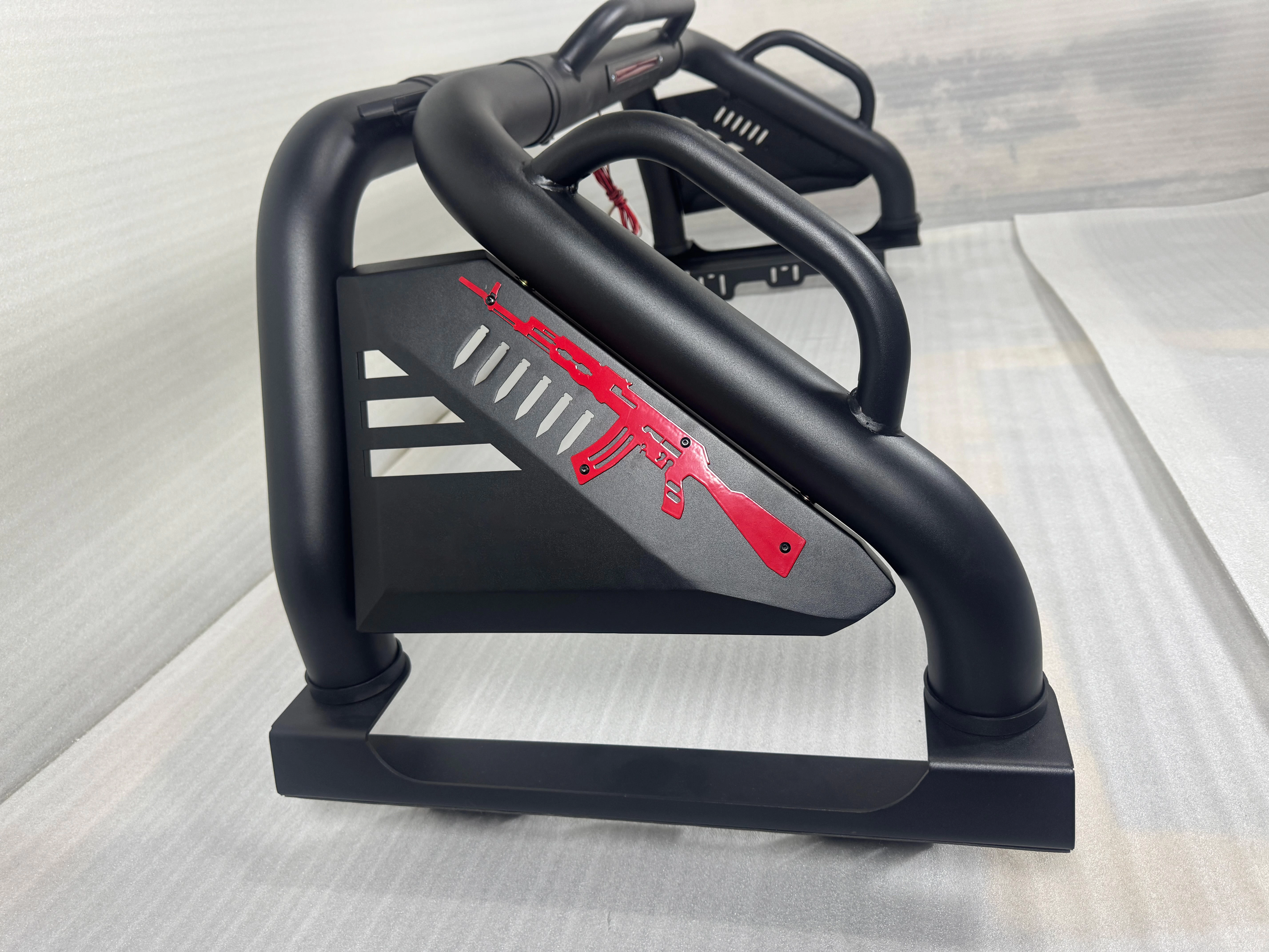 This high-strength steel pickup truck roll bar cargo bed anti-roll protection frame boasts a rugged off-road style with integrated stamping forming that perfectly fits the curve of pickup cargo beds. Its main frame is crafted from thickened carbon steel or stainless steel, with the surface treated by electrostatic spraying and high-temperature baking paint for enhanced durability, while the accessories include galvanized hardware and rubber shock absorbers to ensure stable performance. The frame is thoughtfully designed with reserved mounting holes for spotlights and spare tires, striking an ideal balance between protection and practicality. It is compatible with mainstream pickup models such as Ford F-150, Toyota Tundra/Hilux, Great Wall Poer, and Nissan Navara, making it suitable for a wide range of scenarios including outdoor off-roading, mountain road transportation, pickup modification, cargo binding and fixing, as well as providing reliable protection during driving on harsh road conditions. With an adjustable length of 1500-1800mm, a width of 1200mm, and a customizable height of 600-800mm, it offers flexible adaptation to different needs; its weight ranges from 35-45kg depending on the material used, and it has an impressive maximum load capacity of 300kg.