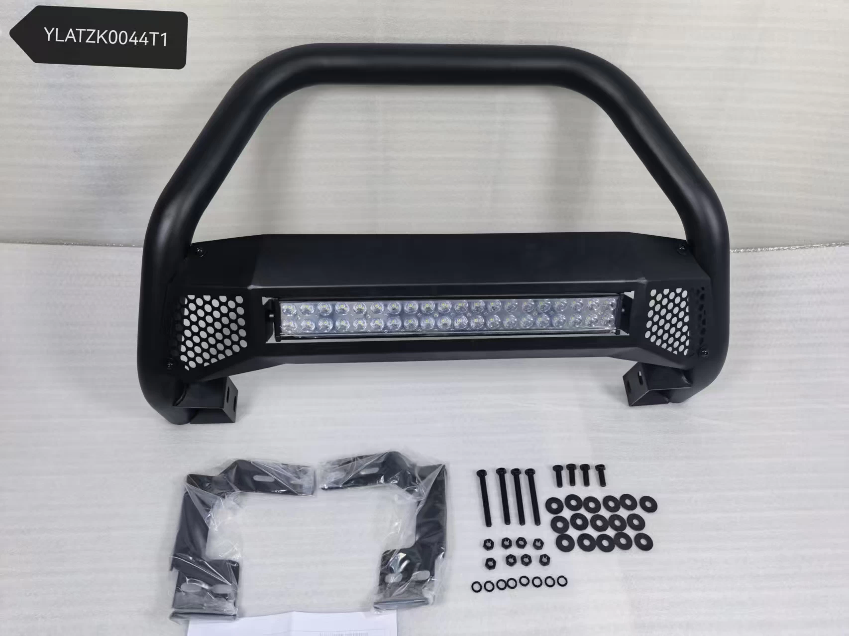 This pickup protection accessory is made of high-quality carbon steel base material, with its surface treated by photoelectric anti-rust and outdoor-grade spray coating for a double anti-corrosion effect. Adopting an original factory style integrated with light off-road elements, it features lines that fit the vehicle body perfectly without being obtrusive, well balancing protective performance and aesthetic appearance. It is compatible with mainstream pickup models including Great Wall Pao, Toyota Tundra, Ford F-150 and Nissan Navara, and is suitable for daily urban commuting, suburban light off-roading and front-end collision protection during cargo transportation. The product offers customized sizes for different models, with the regular model referencing dimensions of 1820mm in length × 460mm in height × 85mm in thickness and an approximate weight of 38kg. It boasts outstanding performance features: the high-strength carbon steel material delivers excellent impact resistance, effectively buffering damage from low-speed collisions; the double anti-corrosion process makes it resistant to salt spray and moisture, applicable to complex climates in coastal areas and rainy/snowy regions; precisely reserved mounting holes enable bolt-on installation without any vehicle damage, eliminating the need for body cutting or welding; it is equipped with a built-in anti-collision buffer structure, and also reserves a license plate mounting position and spotlight interface for strong practicality. For care and maintenance, wipe it with clean water and a neutral detergent for daily cleaning and avoid strong acid or alkali cleaners; repair any surface scratches in a timely manner with a same-color touch-up pen to prevent rust spread; check the mounting bolts every 3 months to ensure they are fastened and avoid loosening due to jolts; for long-term parking, it is recommended to cover it with a dust cover to reduce coating wear caused by sun exposure and rain.